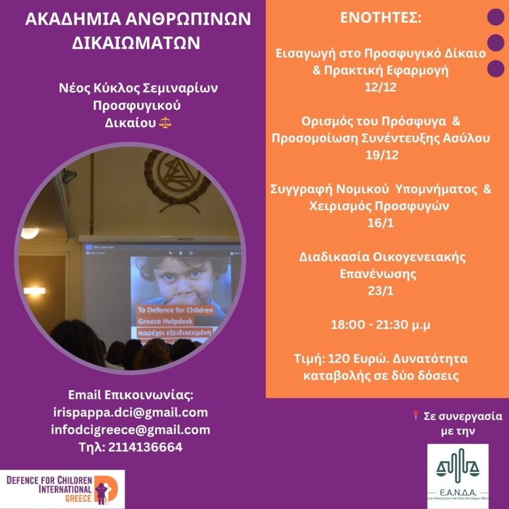Ακαδημία Ανθρωπίνων Δικαιωμάτων της DCI Greece – Νέος Κύκλος Σεμιναρίων Προσφυγικού Δικαίου 2025